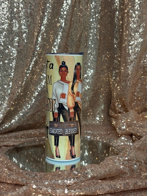 Enjoy your favorite drinks on the go with the Not A Victim Tumbler. This 20 oz stainless steel tumbler features a convenient slide-back top with a straw, making sipping easy and spill-resistant. Durable and stylish, it keeps beverages at the perfect temperature while showing your bold statement. Ships within one week for quick delivery.